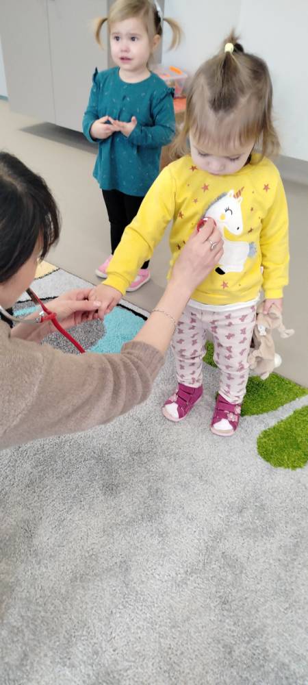 Dzisiaj odwiedziła nas Pani pielęgniarka, która na co dzień współpracuje z nami i z troską sprawdza stan zdrowia naszych maluszków.