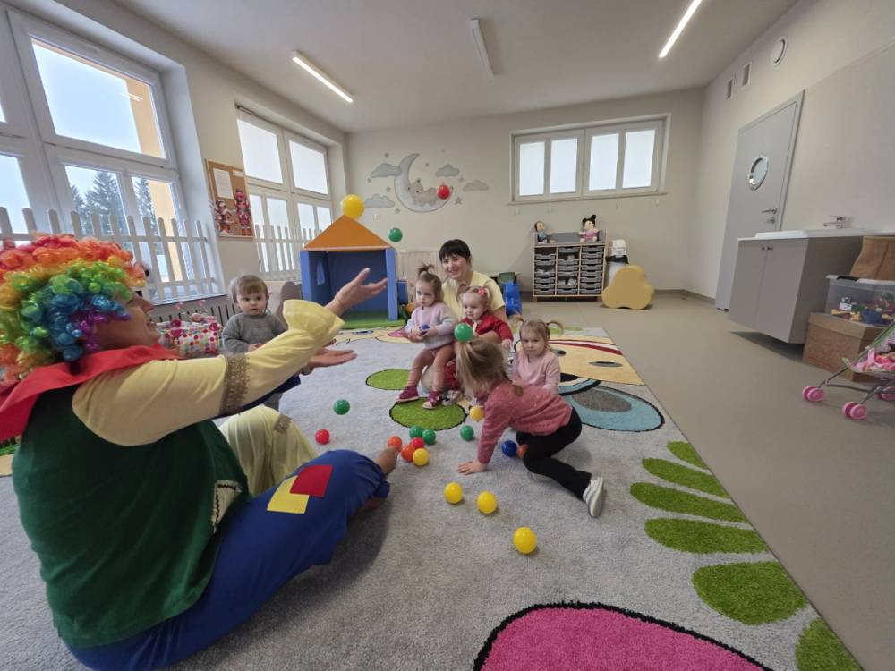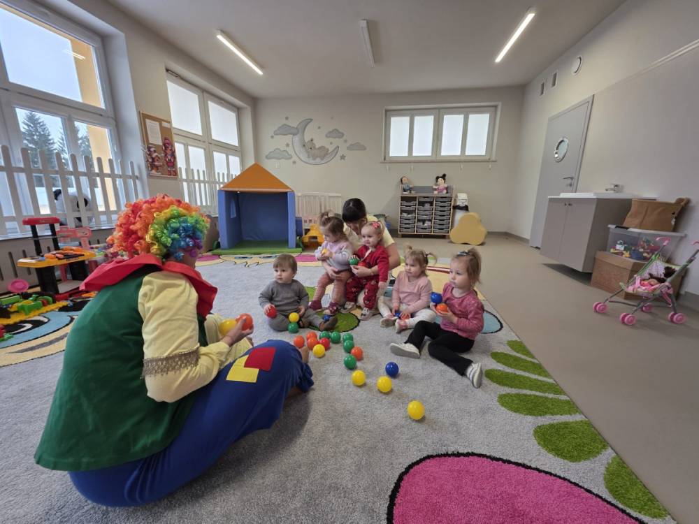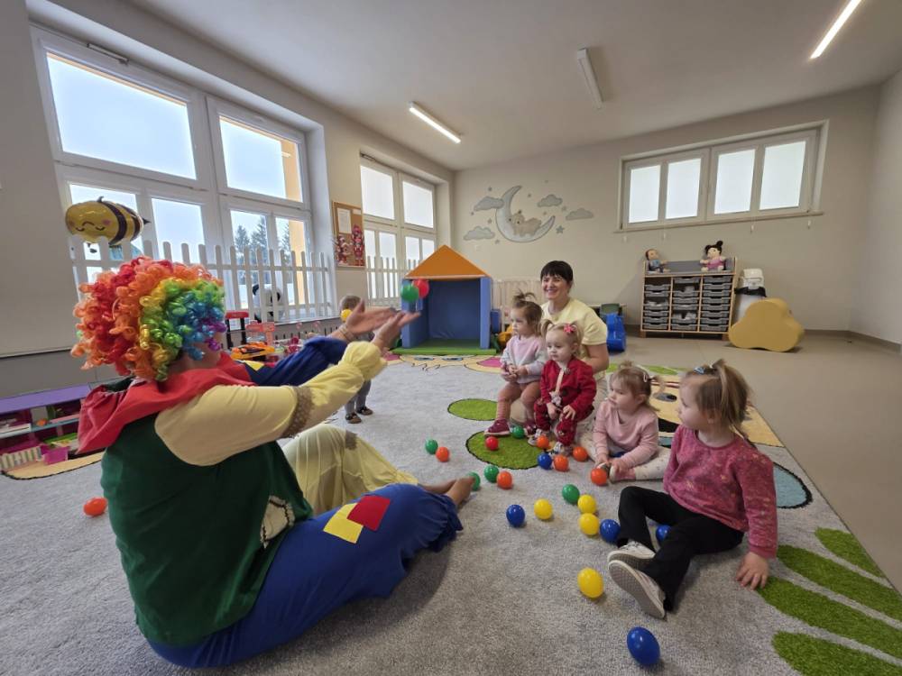 W magicznym świecie zabaw dzieci spotkały króliczka Dasty, który zaprosił je do kolorowej przygody z językiem angielskim. Razem odkrywały barwy, śmiały się i uczyły poprzez zabawę. Do tej niezwykłej podróży dołączył także wesoły klaun, który pokazał dzieciom swój zaczarowany świat piłeczek, pełen radości, ruchu i niespodzianek.