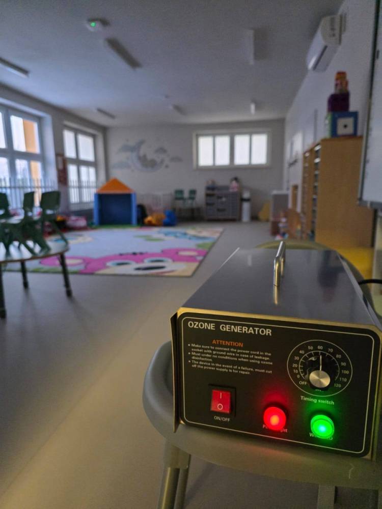 Trzy ozonizatory pracują jednocześnie w trzech pomieszczeniach, skutecznie eliminując wszelkie drobnoustroje, aby maluchy mogły rozpocząć nowy tydzień w czystym i zdrowym środowisku. 💛