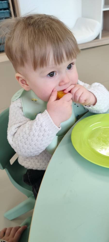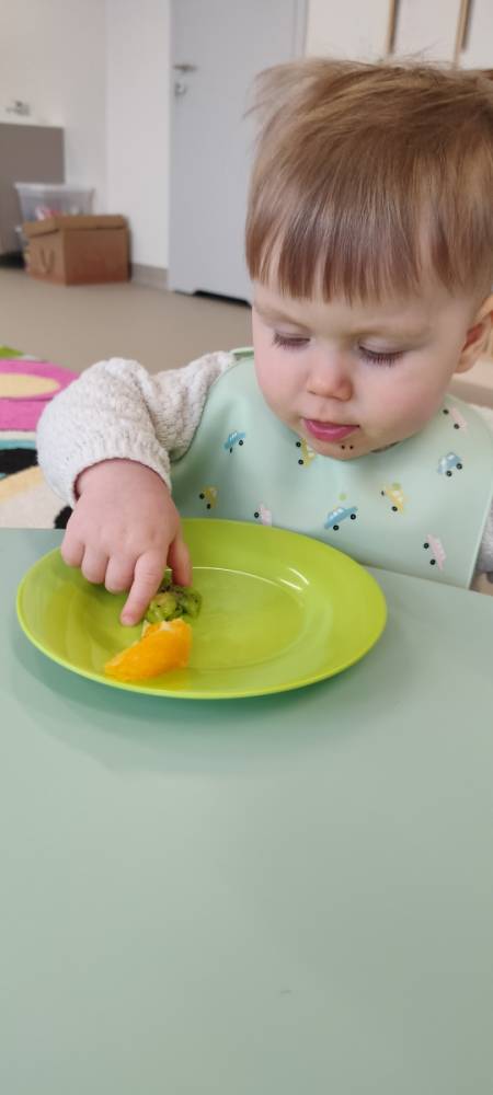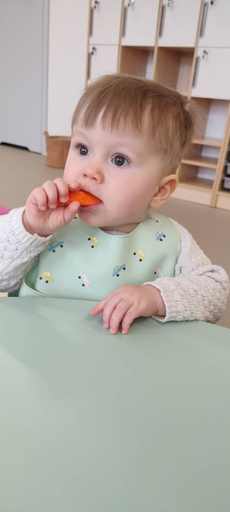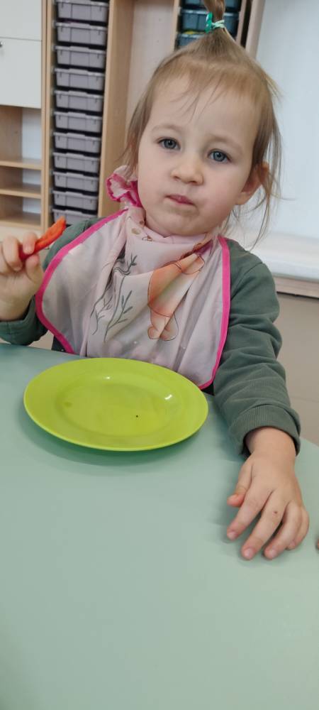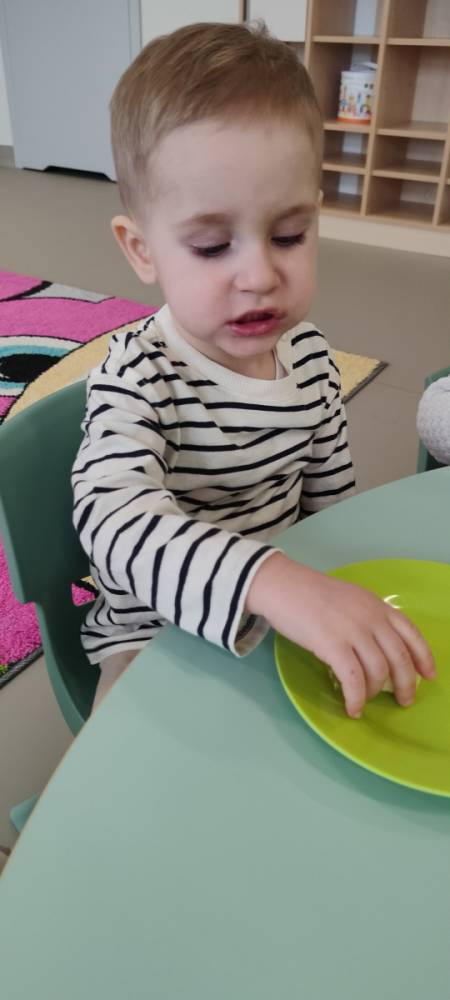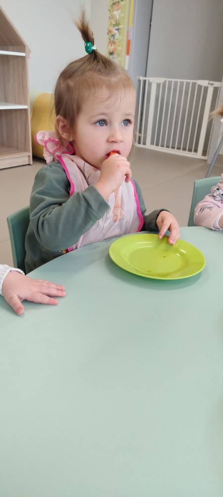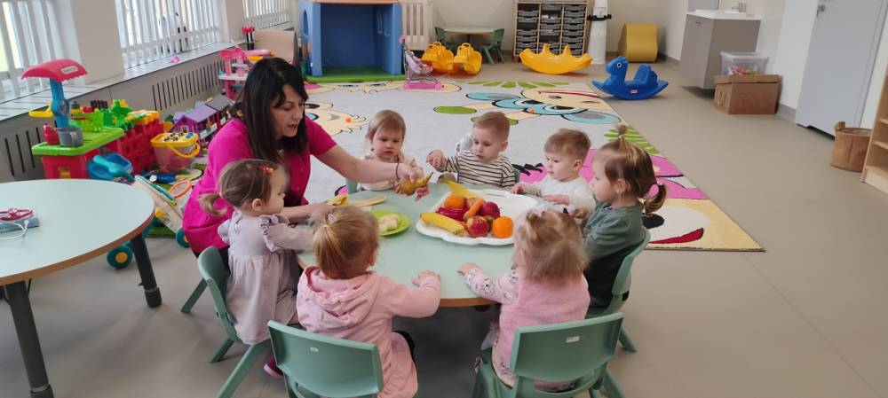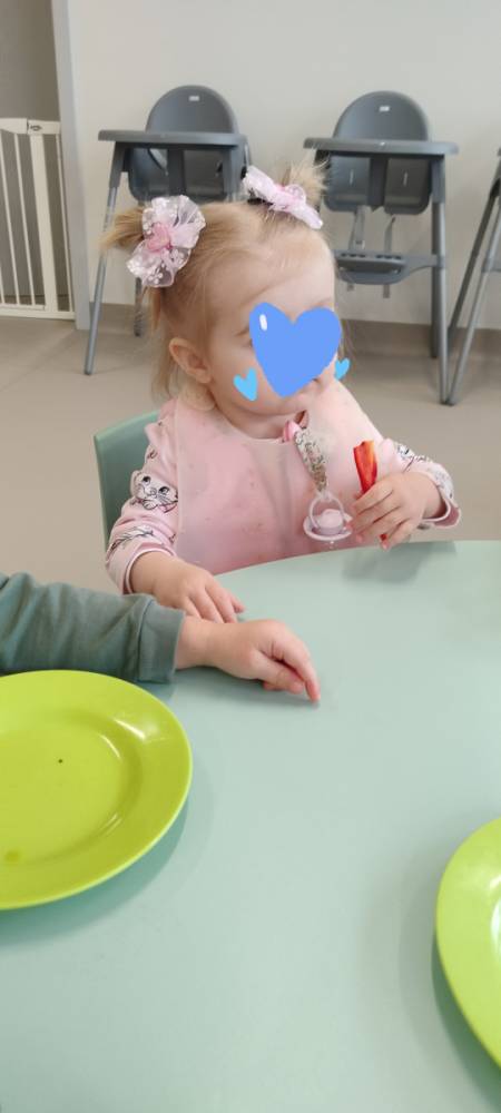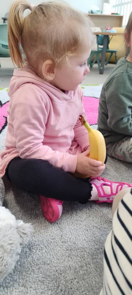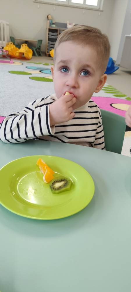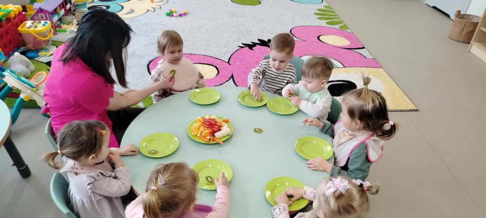 Do żłobka przyszła Pani pielęgniarka, aby opowiedzieć dzieciom o zdrowych nawykach i o tym, jak ważne jest jedzenie owoców i warzyw. Maluszki z zainteresowaniem oglądały kolorowe jabłka, banany, marchewki , paprykę, gruszkę,kiwi i pomarańcze. Pani tłumaczyła, że dzięki nim dzieci rosną zdrowe i silne. Następnie Pani dokładnie umyła wszystkie owoce i warzywa, obrała je i pokroiła na małe kawałeczki. Każdemu dziecku podawała do spróbowania owoce i warzywa, zachęcając do poznawania nowych smaków. Dzieci chętnie próbowały, a na ich twarzach pojawiły się uśmiechy. To był zdrowy i radosny dzień w naszym żłobku. 🍎🥕