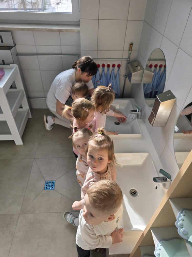 ✨🐝Dziś w naszym żłobku dzieci przed posiłkiem dokładnie umyły rączki, ucząc się prawidłowych nawyków higienicznych. Następnie z apetytem zjadły przygotowany obiad. Dbamy o zdrowie i dobre samopoczucie naszych maluszków każdego dnia✨🥰