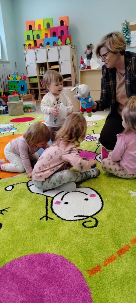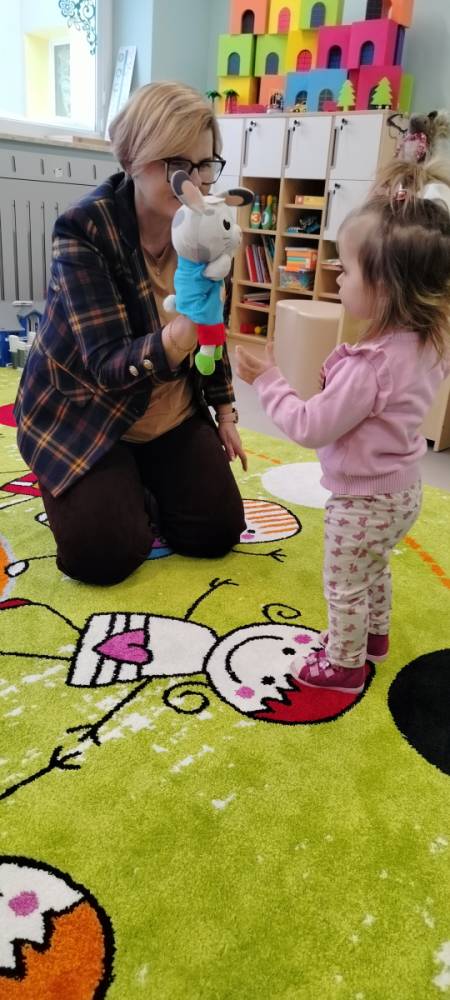 Śnieżnego poranka odwiedził nas wyjątkowy gość – królik Dasty. Od razu skradł serca dzieci i razem z nimi wziął udział w lekcji języka angielskiego. Było dużo radości, powtarzania prostych słówek, piosenek i wspólnej zabawy. Hello! brzmiało dziś wyjątkowo głośno